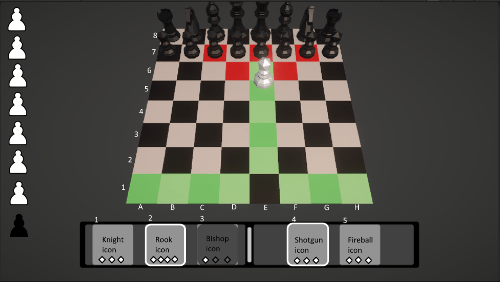 I also paid atention to accessability and QoL with the input system, which might require more clicks and mouse movement than practical or preferred for some players. My solution was to provide players the option to use keyboard input to select pieces and actions or move and attack.